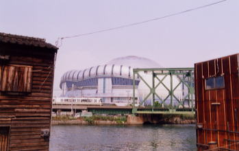 木津川に掛かるめがね橋大正区は「島国」である。 南北に走る木津川と尻無川に挟まれ、西側は大阪湾に面している。市内から車で大正区へ入るには、国道43号線、大正橋、なみはや大橋、そしてその形状から『めがね橋』と呼ばれる千本松大橋など併せて9つの橋を利用するしかない。 また、大正区は電車がJRと地下鉄の僅か一駅、450mの区間しか走らない町であり、市民の足はバス、自転車、タクシーそして昔ながらの渡し船である。 僕は撮影のために自転車を持ち込み、ほぼ半日掛けて島内をぐるっと一周した。大阪湾に沿った工業地帯では、潮風のため錆び付いた工場が立ち並び、今は殆ど見なくなった練炭を造る工場の煙突を発見した。川沿いの工場では、造船所もまだあった。 尻無川の向こうにそびえる大阪ドームと古き時代の臭いがする木造の倉庫が不思議なコントラストを描き出す。 港の船着き場には、錆びて朽ちかけた船が何隻も繋がれ、波間に漂っている。めがね橋の上から見た景色は、工場の排煙のせいかうっすらと霞み、ここが日本だということを一瞬忘れさせてくれる。ブラックレインだったか何かの外国映画のワンシーンに出てくる香港マフィアの舞台のような風景である。 商店街に繰り出すと、その風景はまた一変する。至るところに「沖縄」が出現するのだ。聞けば昔、沖縄から大勢の人々が海を渡って大阪へ仕事を求めて来たそうだ。大正区の全人口の何割かが沖縄県出身の人達である。古い民家の屋根には、沖縄の家の守護神であるシーサーが鎮座している。沖縄の郷土料理の店があちこちに立ち並ぶ。さながらロスのリトルトーキョーならぬ大阪のリトルオキナワである。 市民の島外脱出の足である「渡し船」に乗ってみた。片道僅か5分も掛からない船旅であるが、船を利用する島民(言葉に失礼な響きがあればごめんなさい、僕としては親しみを込めたつもりなのです)達の生活が垣間見えたようだ。1時間に4本の渡し船は何と今の時代に無料であり、地域の人々、馴染みの人々の社交の場なのである。まるでそこだけ時間がゆっくりとたおやかに流れているようである。同乗した高校生の女の子が自転車を降りてポーズをとってくれた。今から梅田へ遊びに行くのだと言う。彼女達にも沖縄の血は流れているのだろうか。ひとなつっこい笑顔が忘れられない。こうして僕の大正島半日ツァーは終わった。今度来るときは、夕暮れに一杯飲りたいものだ。 ![]() 上 めがね橋近くの渡し船と出会った高校生 下 大正区から見た西区 別題 『過去から見る未来』 古い木造倉庫と新しい未来の建造物が川を挟んで対峙する。 行き交う電車の窓から見える景色は何色か… 尻無川から見る大阪ドーム エッセイ 路上的旅人の独り言 <バックナンバー>